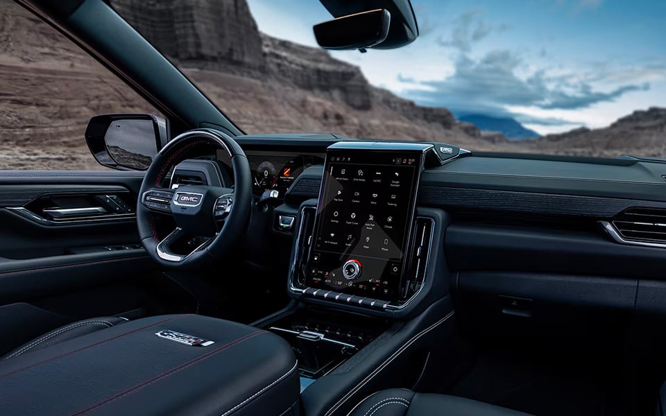 Le GMC Yukon 2025 se distingue par sa polyvalence et son confort sur la route. La suspension pneumatique quatre coins ajuste automatiquement la hauteur du véhicule selon la charge, garantissant une conduite stable et confortable même avec une remorque ou plusieurs passagers. Le système d’infodivertissement centralise toutes les fonctions essentielles, de la navigation au contrôle des caméras de remorquage, en passant par le multimédia et les réglages des sièges.